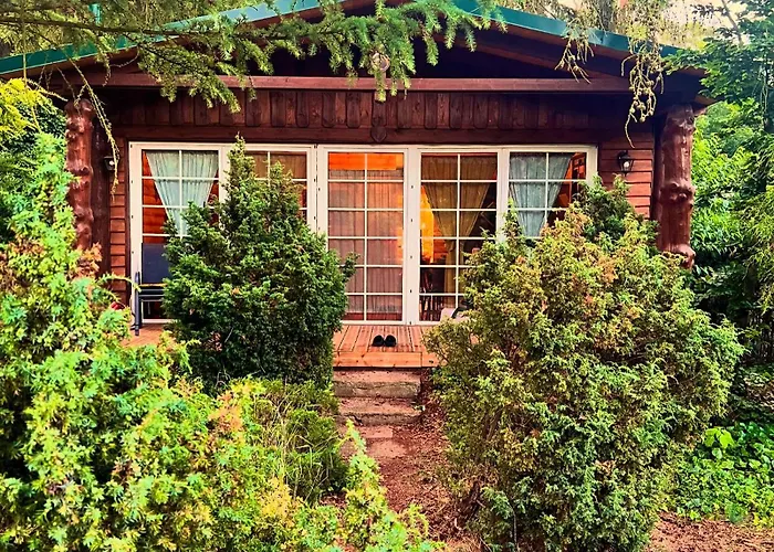 Die 1-Zimmer- Holzhaus Barenhohle Am Wald Und See befindet sich am Strand und bietet Sonnenliegen und Sonnenschirme direkt am Strand.